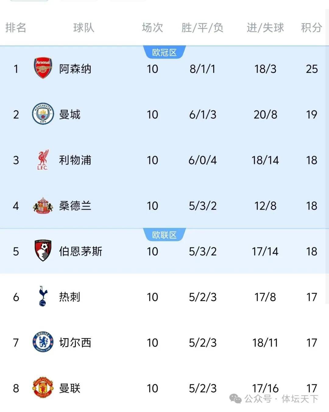 ลีกให้ความสำคัญกับกำลังมากที่สุด ฤดูกาลนี้ ท็อตแนม ฮ็อตสเปอร์ และแมนเชสเตอร์ ยูไนเต็ด ได้ค่อย ๆ ฟื้นฟูฟอร์มการเล่นของพวกเขา หลังจากผ่านไป 10 นัดในพรีเมียร์ลีก ตำแหน่ง 8 อันดับแรกถูกครองโดยสโมสร 'บิ๊กซิกส์' แบบดั้งเดิม ร่วมกับซันเดอร์แลนด์และบอร์นมัธ