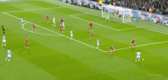 ในนาทีที่ 29 นูเนสเปิดบอลจากทางฝั่งขวา ฮาลันด์กระโดดสูงเหนือกองหลังและโหม่งบอลเข้าประตูอย่างทรงพลัง ทำลายความสมดุลและทำให้แมนเชสเตอร์ ซิตี้ขึ้นนำ 1-0