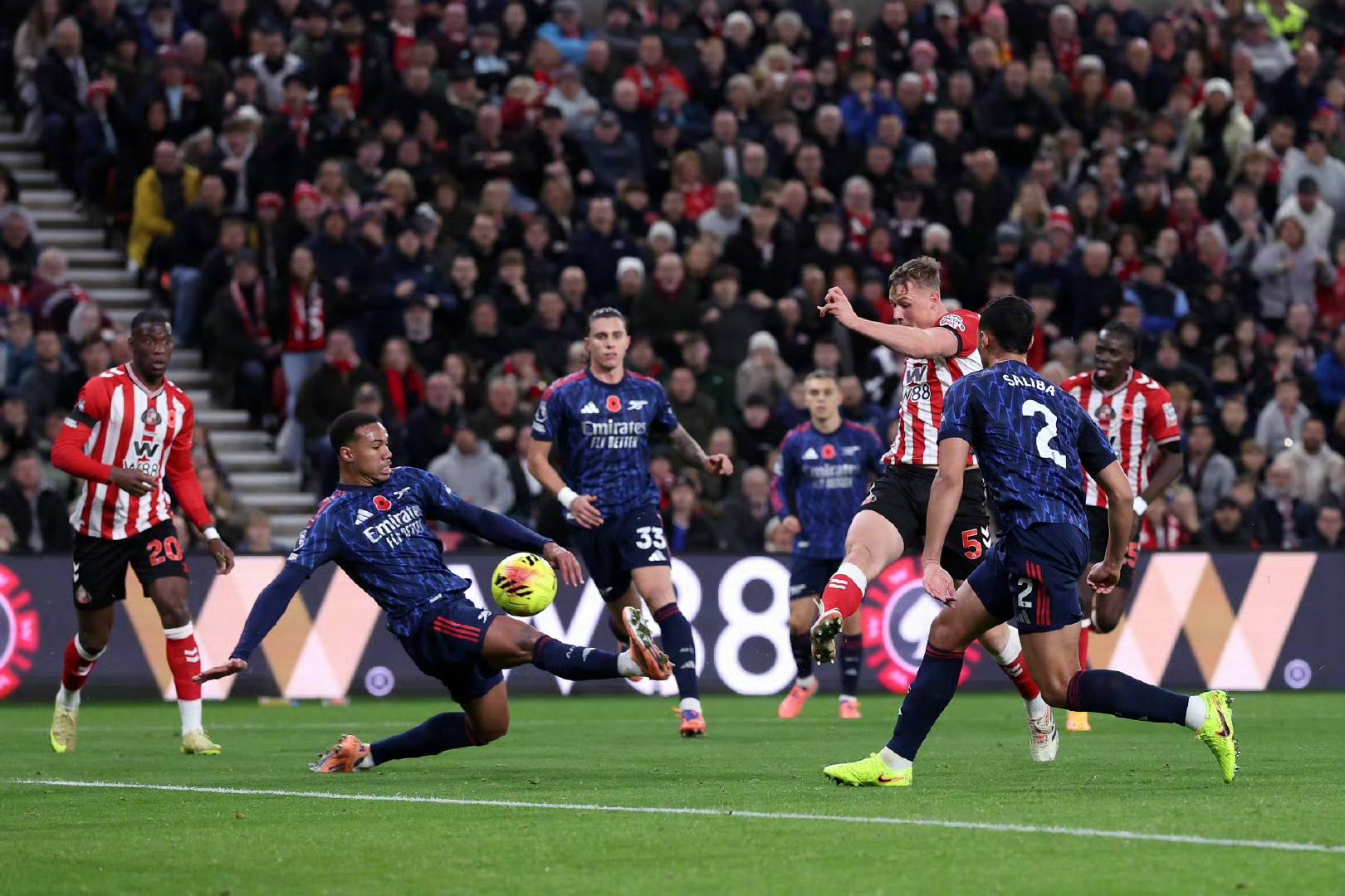 หลังจากการปรับเปลี่ยนในช่วงพักครึ่ง อาร์เซนอลค่อยๆ กลับมามีสมาธิอีกครั้ง ซากาฉวยโอกาสจากการโต้กลับเพื่อทำประตูตีเสมอ ก่อนที่ทรอสซาร์ดจะยิงไกลให้ทีมขึ้นนำ อย่างไรก็ตาม กลยุทธ์การเปลี่ยนตัวที่ระมัดระวังของผู้จัดการทีม มิเกล อาร์เตต้า กลับส่งผลเสีย เมื่อทีมต้องพ่ายแพ้ต่อการบุกอย่างหนักของฝ่ายตรงข้ามในช่วงทดเวลาบาดเจ็บ สุดท้ายจบเกมด้วยผลเสมอ 2-2