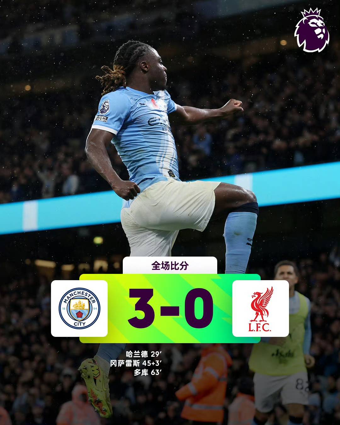 แมนเชสเตอร์ ซิตี้ ชนะ 3-0 ทำให้พวกเขาทำผลงานได้อย่างยอดเยี่ยมในทุกด้าน โดยตารางคะแนนพรีเมียร์ลีกล่าสุดเป็นดังนี้: ลิเวอร์พูลพ่ายแพ้อย่างหนักและตกไปอยู่อันดับที่แปด! _แอสตัน วิลล่า_ _เออร์ลิง ฮาแลนด์_ _แมตช์_
