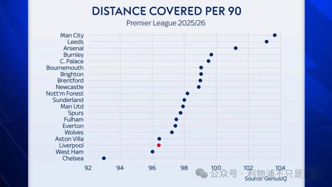 นอกจากนี้ เกี่ยวกับระยะทางรวมที่ครอบคลุม แมนเชสเตอร์ ซิตี้ ครองอันดับหนึ่งในตารางพรีเมียร์ลีกสำหรับระยะทางการวิ่งเฉลี่ยต่อการแข่งขันในฤดูกาลนี้ ในขณะที่ลิเวอร์พูลอยู่ในอันดับที่สามจากท้ายสุดอย่างน่าประหลาดใจ ควรเน้นว่าแนวโน้มนี้ไม่ได้เกิดขึ้นเพียงหลังจากแต่งตั้งสล็อท ตั้งแต่ฤดูกาล 2021-22 ระยะทางการวิ่งของลิเวอร์พูลลดลงทุกปี ซึ่งเป็นรูปแบบที่ยังคงอยู่แม้ในช่วงสามฤดูกาลสุดท้ายของคล็อปป์ภายใต้การคุมทีมของสล็อท การลดระยะทางการวิ่งนี้เป็นการเปลี่ยนแปลงเชิงกลยุทธ์ที่ตั้งใจไว้ โดยเขาให้ความสำคัญกับการครองบอลมากกว่าสไตล์การกดดันสูงของคล็อปป์ การปรับเปลี่ยนนี้ช่วยประหยัดพลังงานและลดการบาดเจ็บในฤดูกาลที่แล้ว อย่างไรก็ตาม เมื่อผลงานของทีมตกต่ำลงในฤดูกาลนี้ ระยะทางการวิ่งที่ลดลงจึงกลายเป็นจุดที่ถูกวิจารณ์อย่างหลีกเลี่ยงไม่ได้