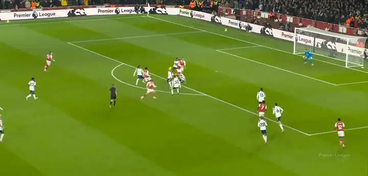 เผชิญหน้ากับแนวรับของท็อตแนมที่ผู้เล่นยืนแน่นกันเป็นกลุ่ม เขาเลือกที่จะส่งบอลโด่งข้ามหัว ด้วยการไม่หวั่นไหวต่อเสียงเชียร์จากแฟนบอล เขาจับจังหวะได้อย่างสมบูรณ์แบบ ส่งบอลลอยขึ้นฟ้า ก่อนจะข้ามศีรษะกองหลังไปอย่างสวยงาม เพื่อนร่วมทีมของเขาวิ่งมาถึงในจังหวะที่เหมาะสมพอดี และยิงวอลเลย์เข้าประตูไป