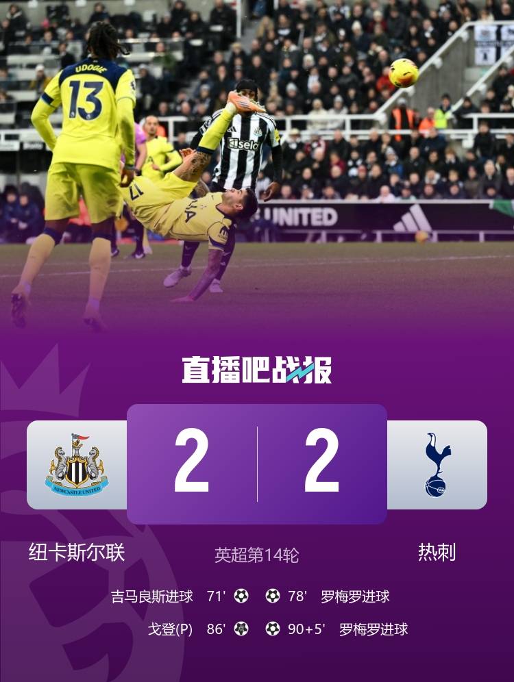 เวลา 04:15 น. ตามเวลาปักกิ่ง วันที่ 3 ธันวาคม การแข่งขันพรีเมียร์ลีกนัดที่ 14 ได้เริ่มขึ้นที่สนามเซนต์เจมส์พาร์ค โดยท็อตแน่มฮ็อทสเปอร์พบกับนิวคาสเซิลยูไนเต็ด ในครึ่งแรก โจเอลินตันยิงต่ำไปชนเสา ขณะที่เบนไวท์ก็ยิงท่าแมงป่องสร้างโอกาสได้เช่นกันหลังจากพักครึ่ง บาร์นส์พลาดโอกาสยิงประตูแบบตัวต่อตัว เด็นโซะเคลียร์บอลออกจากเส้นประตู และวัลเธอร์-มาเดอร์ช่วยจิมเยเนซทำประตูเบิกร่อง โคดุสจากนั้นก็จ่ายบอลให้โรเมโรโหม่งตีเสมอ เบนตันกูร์ทำฟาวล์จนเสียจุดโทษ ซึ่งกอร์ดอนยิงเข้าไป ก่อนที่โรเมโรจะยิงประตูตีเสมอแบบผาดโผน จบเกมเสมอกัน 2-2 ทำให้ท็อตแน่มไม่ชนะใครติดต่อกันเป็นนัดที่ 5