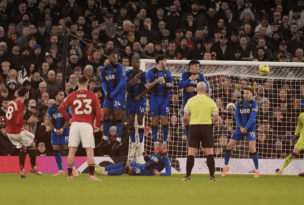 ในนาทีที่ 77 กัปตันทีมแมนเชสเตอร์ ยูไนเต็ด บรูโน่ แฟร์นันด์ส ตอบแทนความกรุณา ด้วยการยิงฟรีคิกจากจุดเกือบเดียวกัน บอลพุ่งตรงเข้าประตูอย่างสวยงาม ทำให้ผู้รักษาประตูหมดสิทธิ์ป้องกัน แมนเชสเตอร์ ยูไนเต็ด 3-3!