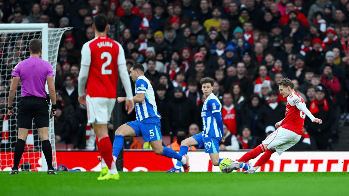 อาร์เซนอลคว้าชัยชนะในบ้านเหนือไบรท์ตัน 2-1 ทำให้พวกเขาชนะติดต่อกันในลีกเป็นนัดที่สาม และแซงหน้าแมนเชสเตอร์ ซิตี้ ขึ้นครองตำแหน่งจ่าฝูงของตารางอีกครั้ง