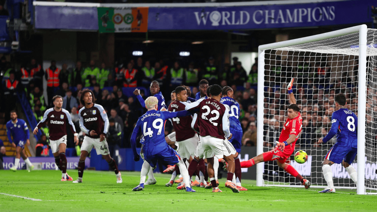 ในนาทีที่ 37 รีซ เจมส์ เปิดลูกเตะมุม ความวุ่นวายเกิดขึ้นหน้าประตูของวิลล่า เมื่อบอลกระทบหน้าแข้งของเปโดรและกระดอนเข้าประตูไป