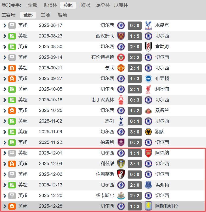 ฟอร์มที่ย่ำแย่ของเชลซีในเดือนธันวาคมทำให้ทีมสิงห์บลูส์หลุดจากการลุ้นแชมป์ไปสู่อันดับที่สี่ของตาราง ขณะที่แอสตัน วิลล่า ซึ่งพลิกผลการแข่งขันกับทีมสิงห์บลูส์ได้ เปลี่ยนเป้าหมายจากการลุ้นอันดับที่สี่ไปเป็นการท้าชิงแชมป์แฟนบอลเชลซีส่วนใหญ่ได้แสดงความไม่พอใจต่อผู้จัดการทีม เมาริซิโอ มารินสก้า โดยส่วนใหญ่เห็นว่าการเปลี่ยนตัวผู้เล่นของเขาในหลายนัดนั้นเลวร้ายอย่างยิ่ง แฟนบอลหลายคนกำลังเรียกร้องให้คณะกรรมการของเชลซีเปลี่ยนผู้จัดการทีม เนื่องจากชัยชนะในสโมสรโลกที่ผ่านมาได้ปกปิดข้อบกพร่องทางยุทธศาสตร์และการปรับตัวในเกมของมารินสก้าไว้