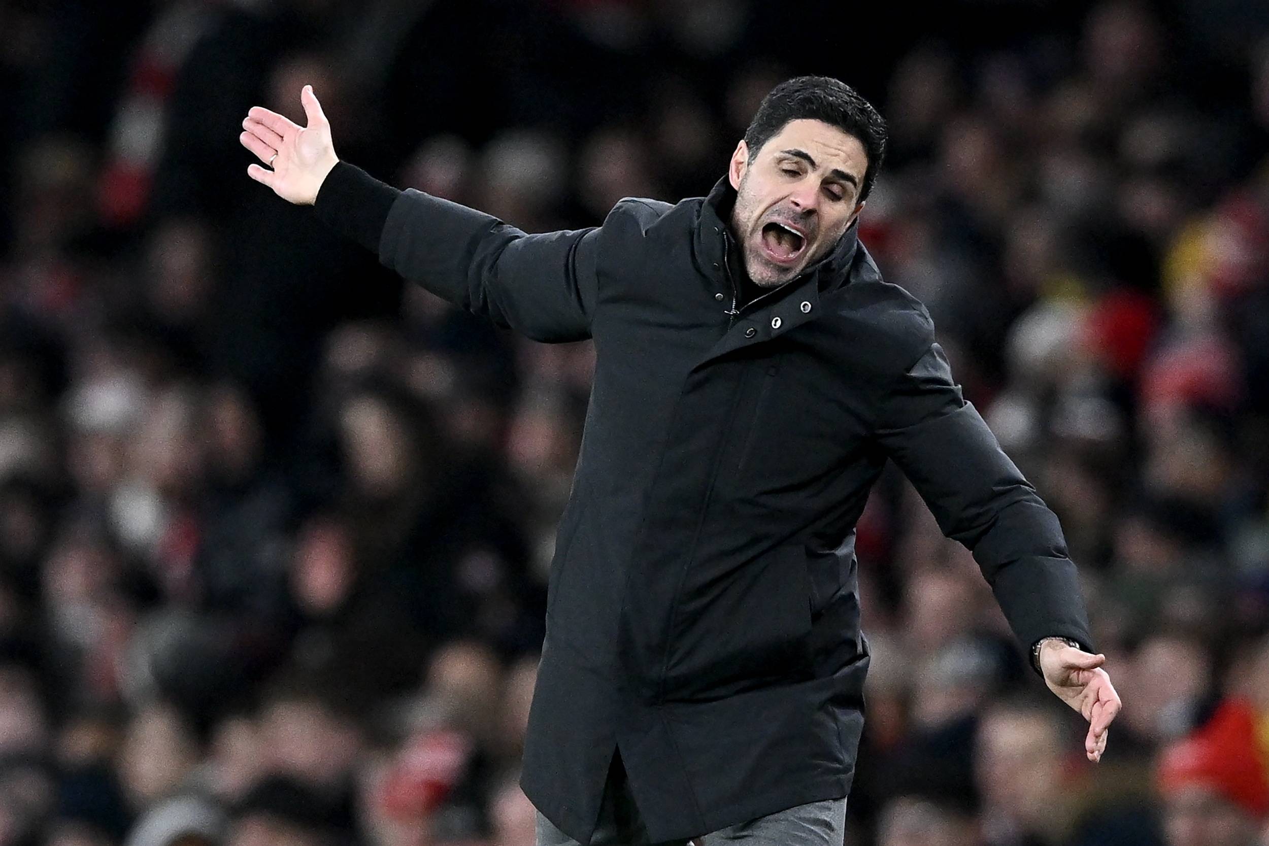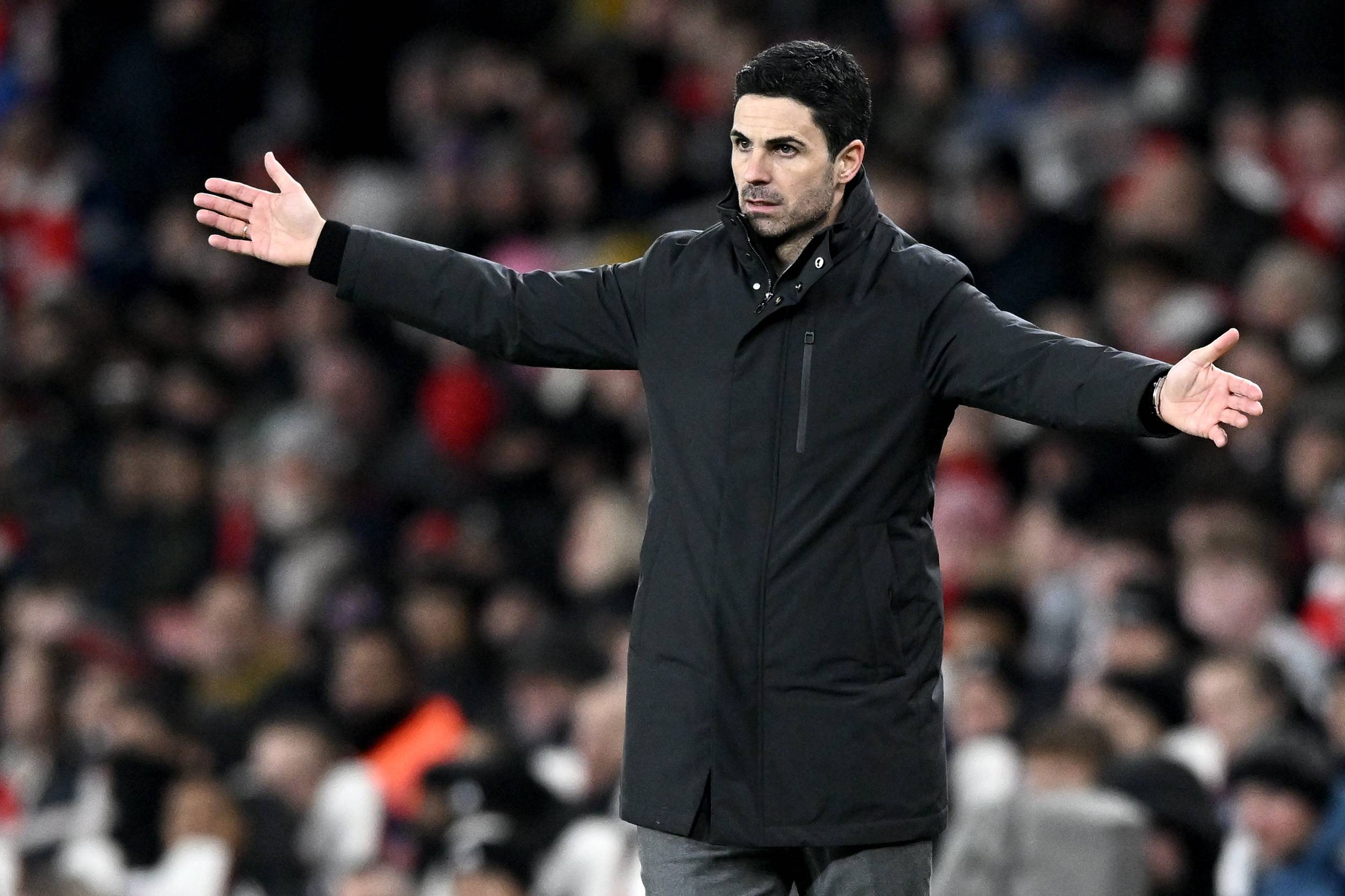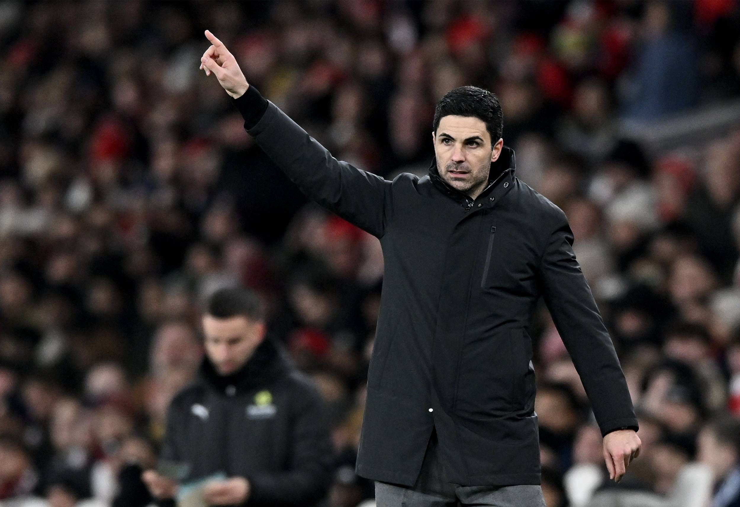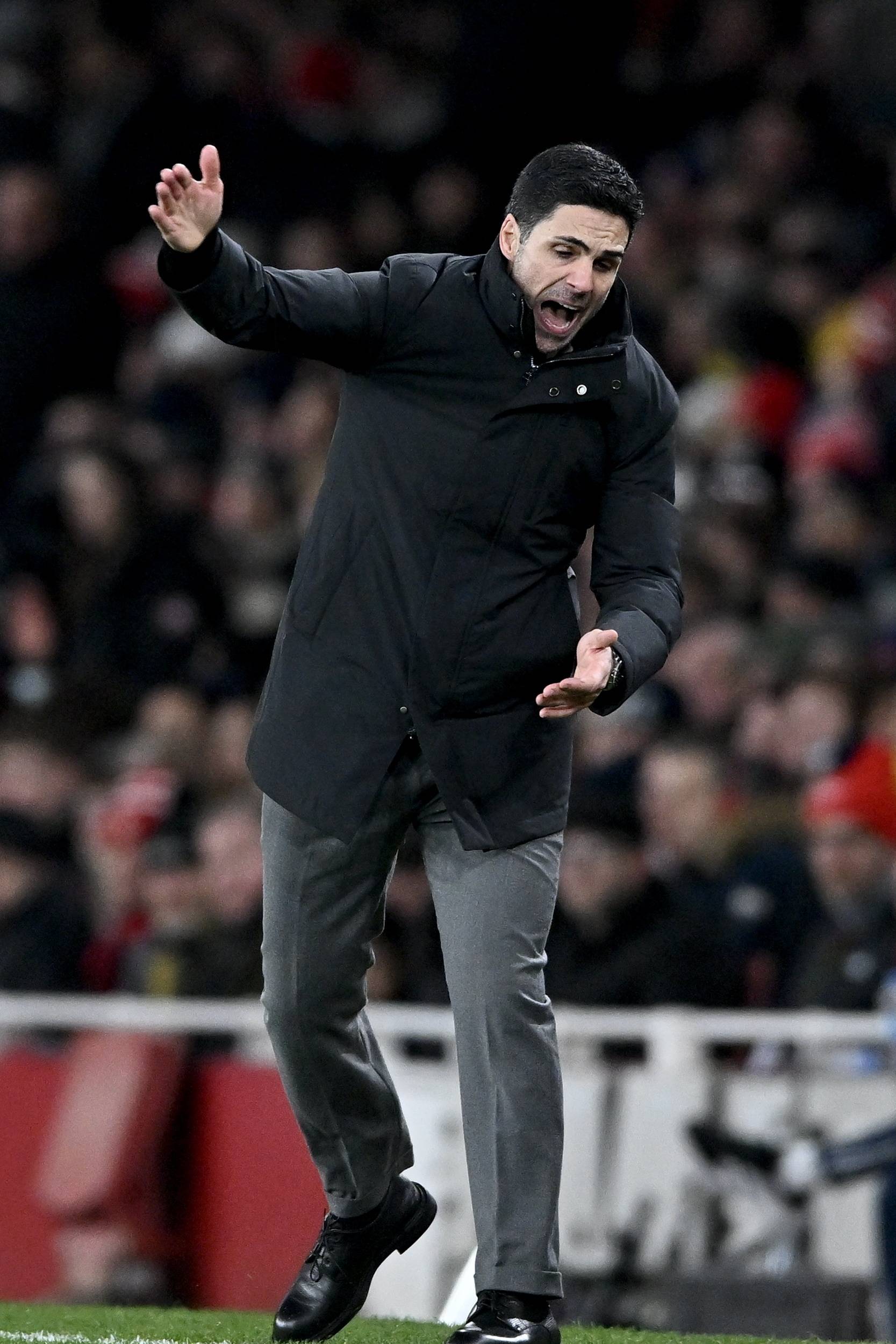 เมื่อวันที่ 30 ธันวาคม มิเกล อาร์เตต้า ผู้จัดการทีมอาร์เซนอล คุมทีมจากข้างสนาม ซินหัว/EPA