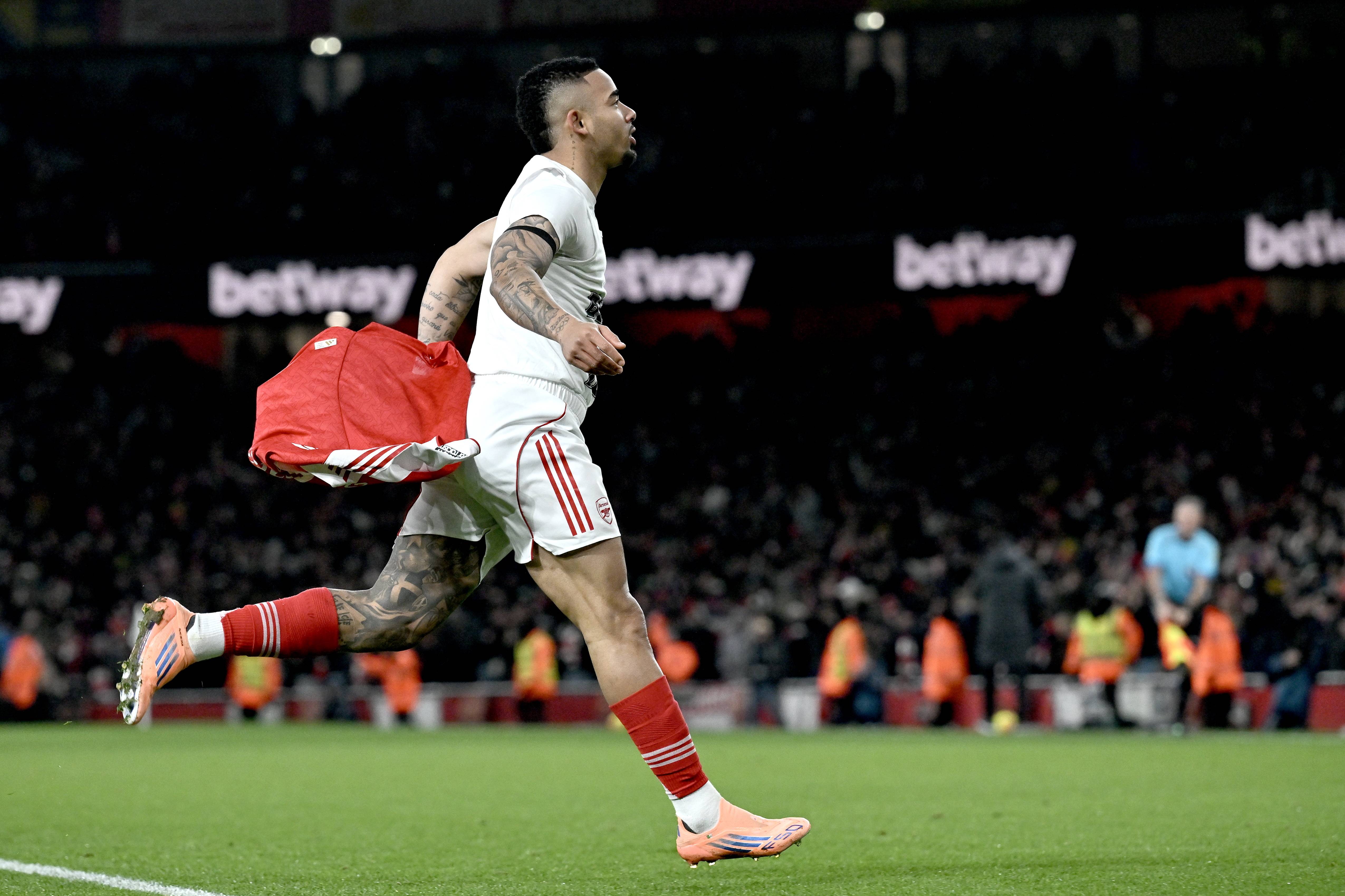 เมื่อวันที่ 30 ธันวาคม กาเบรียล เฆซุส นักเตะอาร์เซนอล ฉลองชัยชนะ Xinhua/EPA