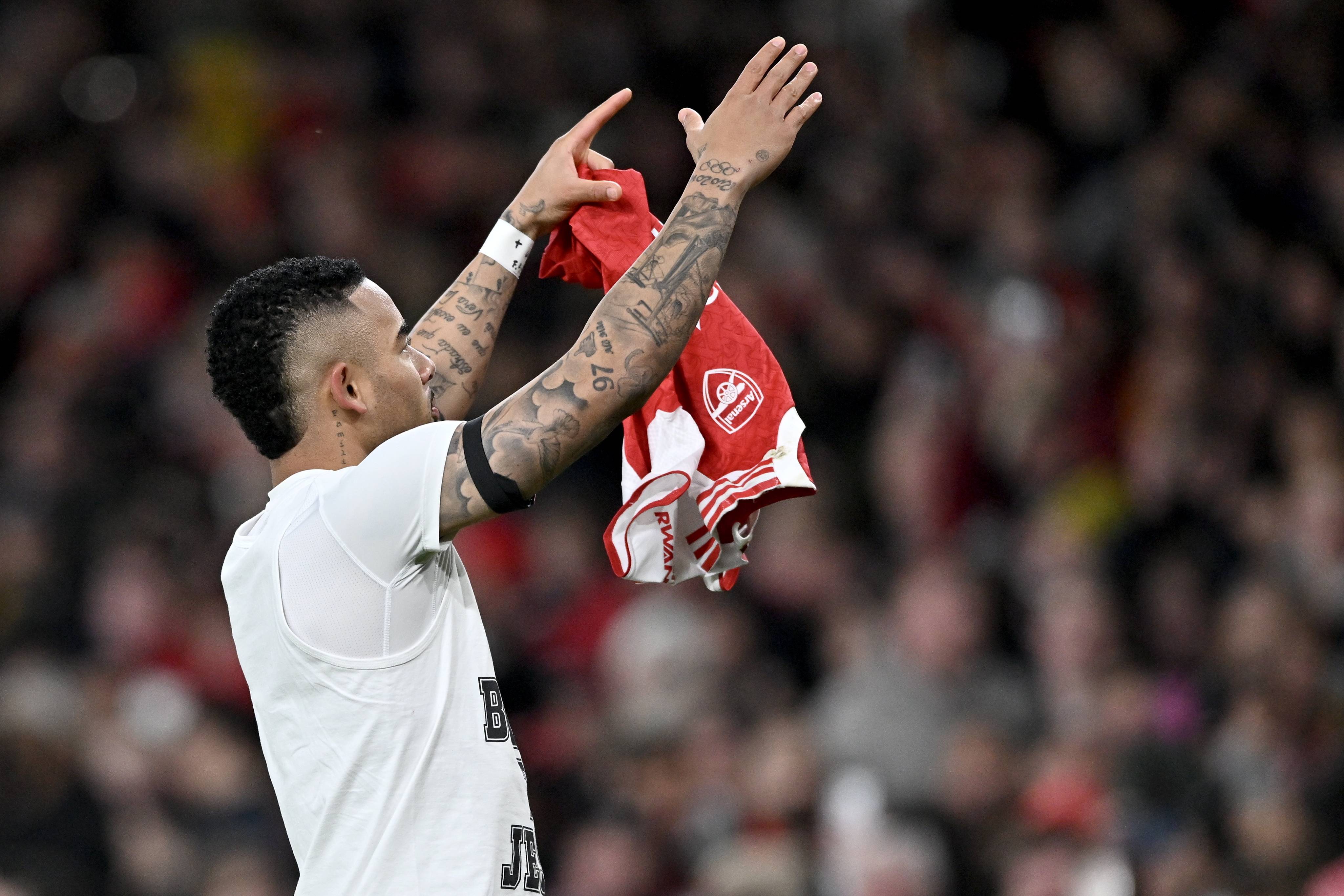 เมื่อวันที่ 30 ธันวาคม กาเบรียล เฆซุส นักเตะอาร์เซนอล ฉลองการทำประตูที่สี่ของทีม Xinhua/EPA