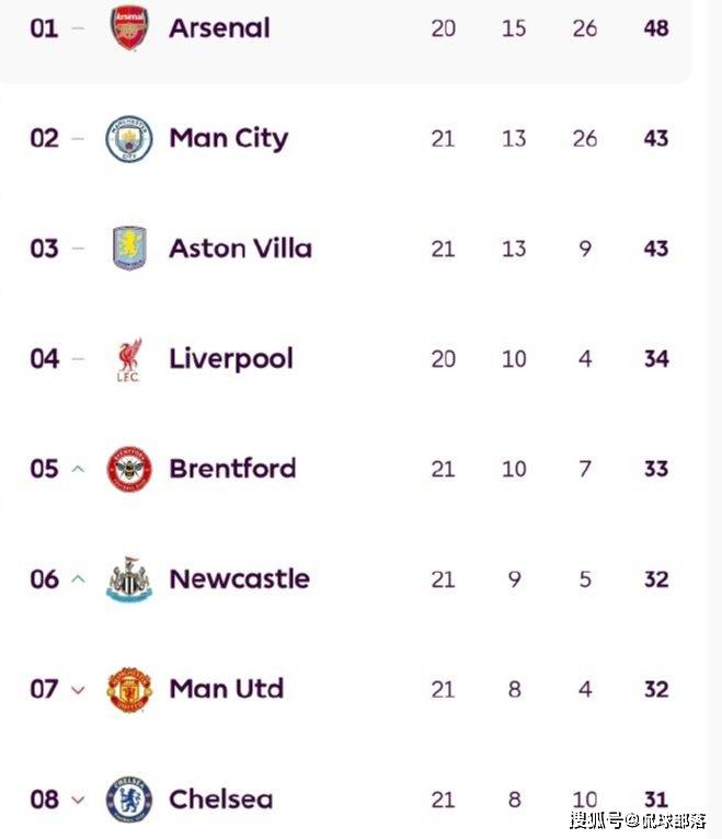 เมื่อวันที่ 8 มกราคม ตามเวลาปักกิ่ง มีการแข่งขัน 8 คู่ในรอบที่ 21 ของพรีเมียร์ลีก สี่ทีมยักษ์ใหญ่ดั้งเดิมอย่างแมนเชสเตอร์ ซิตี้, แมนเชสเตอร์ ยูไนเต็ด, เชลซี และท็อตแน่ม ฮ็อตสเปอร์ ต่างก็ไม่สามารถคว้าชัยชนะได้อีกครั้ง ขณะที่อาร์เซนอล ทีมจ่าฝูงของลีกซึ่งมีโปรแกรมแข่งขันในรอบนี้ถูกเลื่อนออกไป ได้กลายเป็นผู้ได้ประโยชน์หลัก