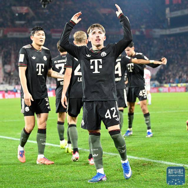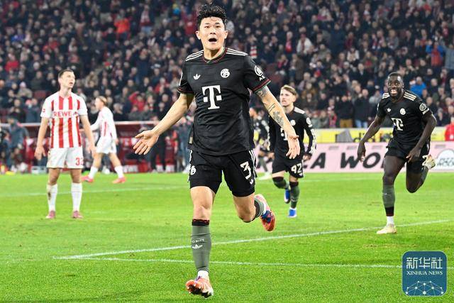 ↑ คิม มิน-แจ นักเตะบาเยิร์น มิวนิค (ด้านหน้า) ฉลองการทำประตูระหว่างการแข่งขัน
