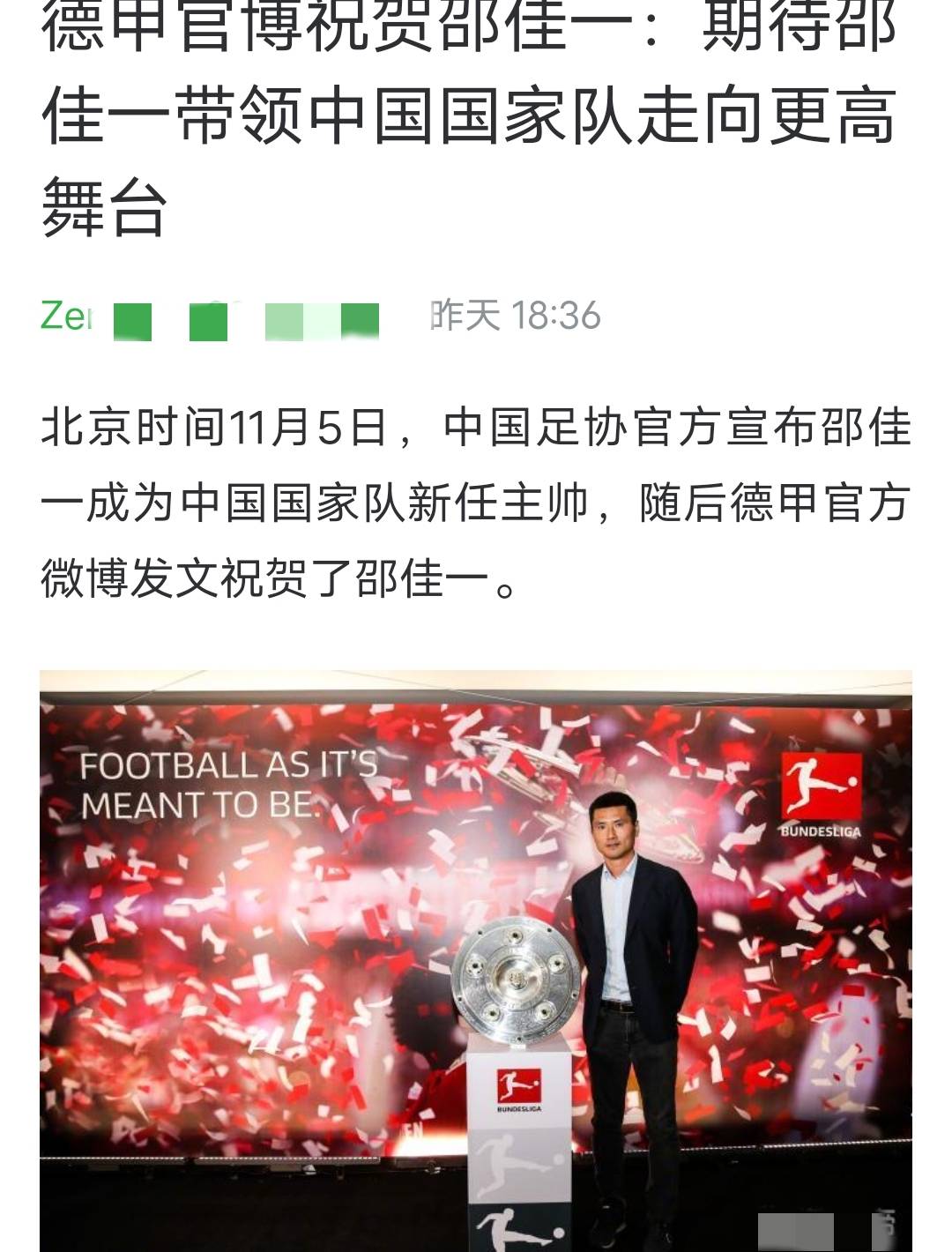 บุนเดสลีกาออกแถลงการณ์สนับสนุนการแต่งตั้ง เชา เจียยี่ เป็นโค้ชทีมชาติจีน; จะมีการจัดตั้งทีมผู้ช่วยโค้ชชาวเยอรมัน; นักเตะทีมชาติแสดงความประสงค์ที่จะกลับเข้าร่วมทีม _Maurer_ หัวหน้าผู้ฝึกสอน เอเชียนคัพ