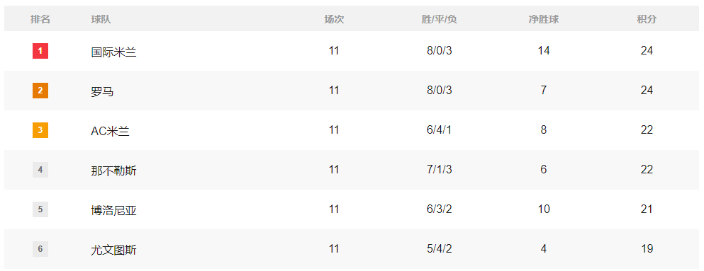 ในเซเรีย อา เอซี มิลาน เสมอ 2-2 ยังคงมี 22 คะแนน ขณะที่ นาโปลี พ่ายแพ้ต่อ โบโลญญา 0-2 โรม่า ชนะ อูดิเนเซ่ 2-0 และ อินเตอร์ มิลาน เอาชนะ ลาซิโอ 2-0 ทำให้ เนรัซซูรี่ ขึ้นนำร่วมกับ จัลโลรอสซี่ ด้วย 24 คะแนน ขณะที่ มิลาน และ นาโปลี มี 22 คะแนนเท่ากัน ส่วนชัยชนะของ โบโลญญา ทำให้พวกเขาขึ้นสู่กลุ่มบนด้วย 21 คะแนน