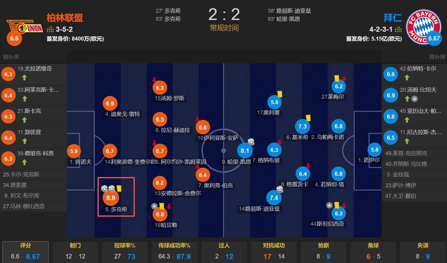 บาเยิร์น มิวนิค หยุดสถิติชนะติดต่อกัน 16 นัดในฤดูกาลนี้ลงได้ หลังจากที่ ยูเนียน เบอร์ลิน เสมอกับพวกเขา 2-2 ในรอบที่ 10 ของบุนเดสลีกา ดอดี กองหลังชาวดัตช์ ทำประตูทั้งสองลูก กลายเป็นผู้สร้างผลงานที่ทำให้บาเยิร์นไม่สามารถรักษาสถิติไม่แพ้ใครในฤดูกาลนี้ได้