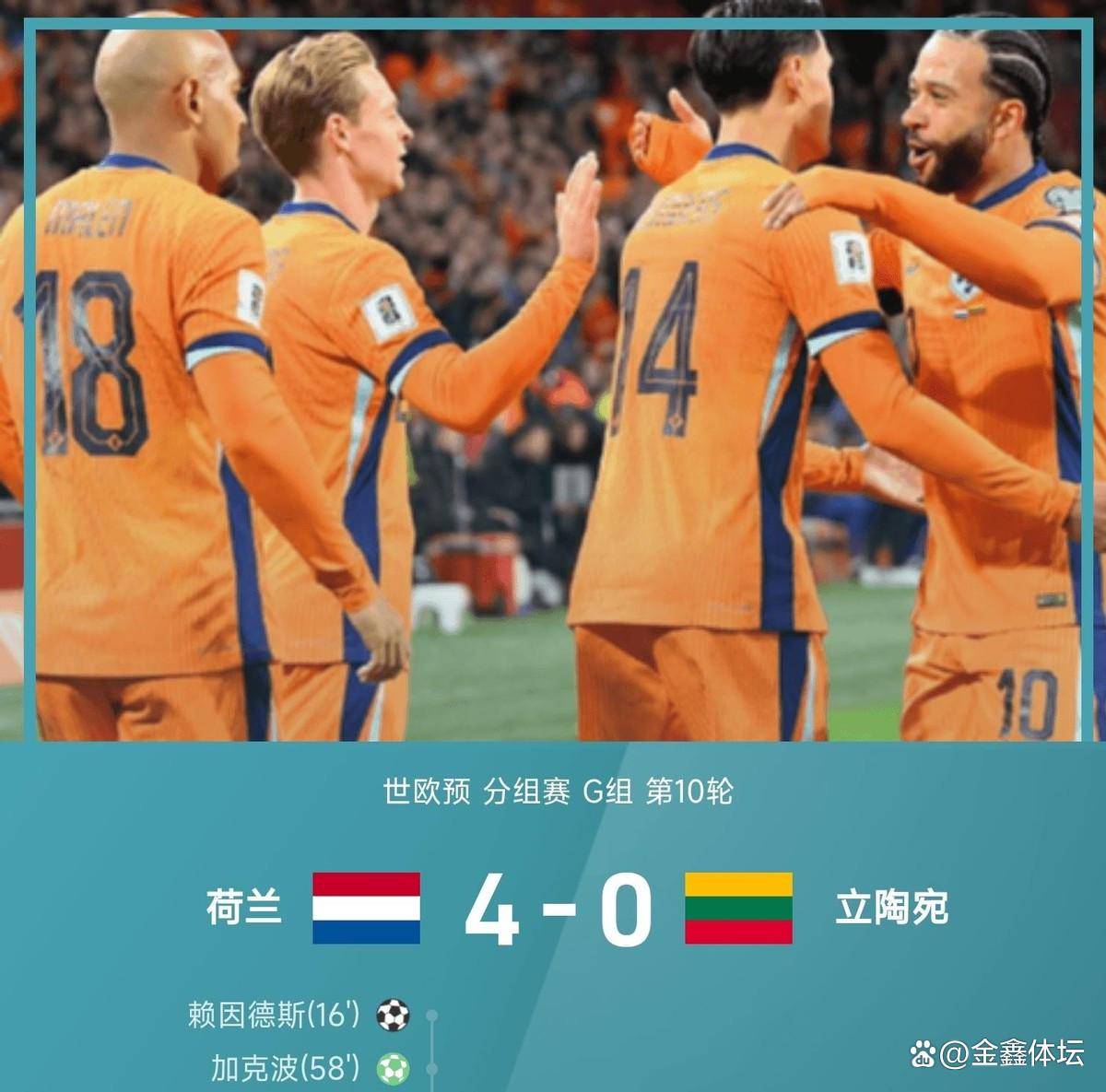 ขณะที่ทีมเยอรมันฉลองกันอย่างบ้าคลั่ง บนสนามอีกแห่งหนึ่ง ทีมชาติเนเธอร์แลนด์ก็คว้าตั๋วไปฟุตบอลโลกได้เช่นกันด้วยชัยชนะอย่างถล่มทลาย ในรอบที่สิบของกลุ่มจี ทีมชาติเนเธอร์แลนด์เปิดบ้านต้อนรับลิทัวเนีย