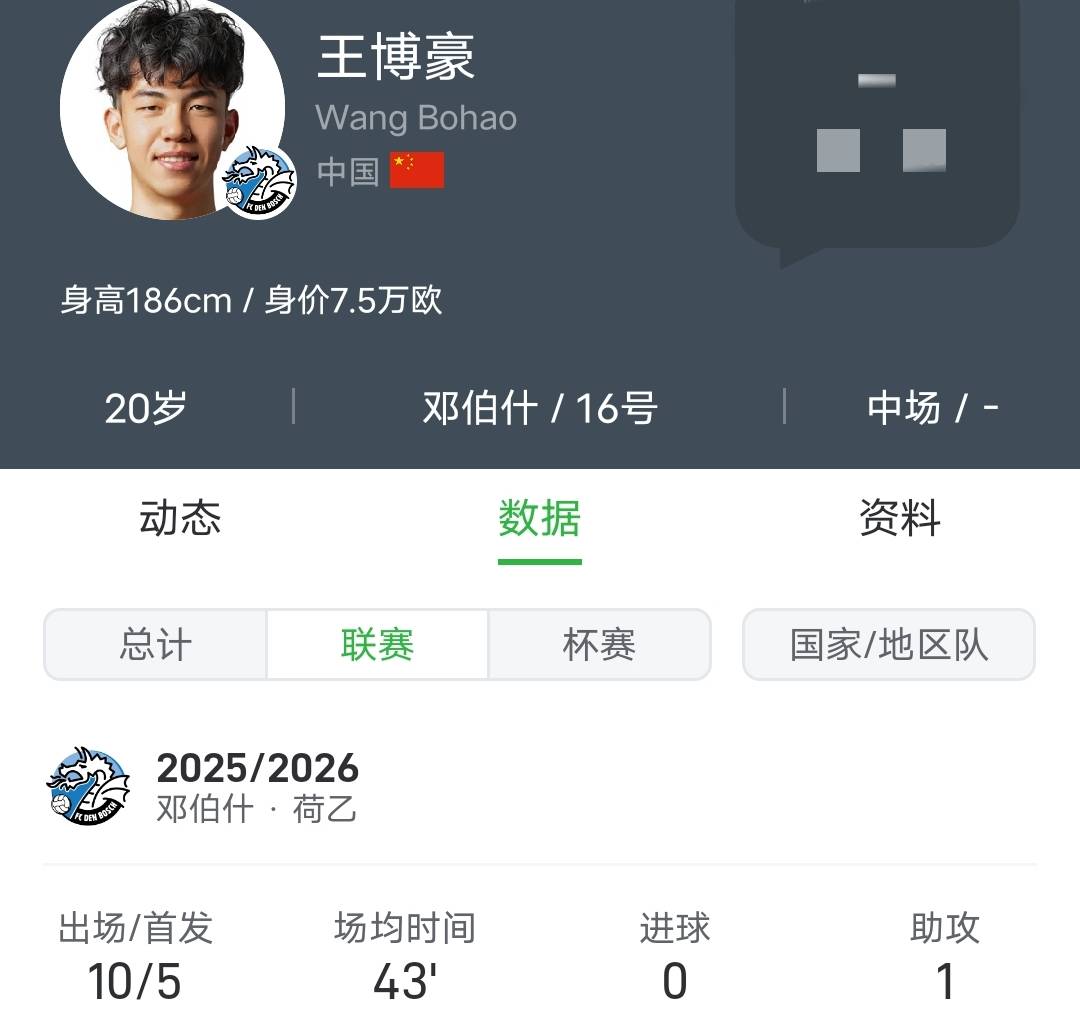 หวัง โป๋ห่าว (เกิดปี 2005) ได้เข้าร่วมทีมเดน โบช ในลีกเอเรอสต์ของเนเธอร์แลนด์ จากทีมส่านซีในลีกวันของจีนในช่วงกลางเดือนสิงหาคมปีนี้ ณ วันที่ 21 พฤศจิกายน หวังได้ลงเล่นให้กับเดน โบช 10 นัด รวมถึงการเป็นตัวจริง 5 นัด และทำแอสซิสต์ได้ 2 ครั้ง นอกจากนี้ เขายังได้ลงเล่นในถ้วยเนเธอร์แลนด์คัพ 1 นัด ทำให้จำนวนการลงเล่นทั้งหมดให้กับสโมสรเป็น 11 นัด