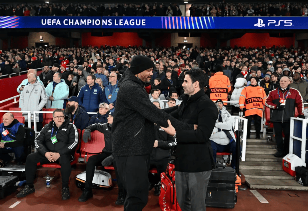 นี่เป็นการปะทะกันระหว่างอดีตเพื่อนร่วมทีมด้วยเช่นกัน โดยวินเซนต์ คอมปานี—ผู้ที่ถูกมองว่าเป็นทายาทของเป๊ป กวาร์ดิโอลา—เดินทางมาถึงลอนดอนพร้อมด้วยออร่าแห่งความไร้เทียมทาน อย่างไรก็ตาม ออร่านั้นกลับกลายเป็นของรางวัลให้กับอดีตผู้ฝึกสอนของเขาแม้ว่าสถิติการไม่เสียประตูในแชมเปียนส์ลีกของทีมเขาในฤดูกาลนี้จะถูกทำลาย แต่ไมเคิล อาร์เตตา ก็จัดการกับการโต้กลับทางด้านการป้องกันได้เกือบสมบูรณ์แบบ ทีมของเขาได้ยกโล่ใหญ่ขึ้นมาเพื่อทำลายอาวุธแหลมคมของบาเยิร์น – รักษาตำแหน่งจ่าฝูงของแชมเปียนส์ลีกไว้ได้ด้วยการชนะติดต่อกัน 5 นัด พร้อมทั้งครองตำแหน่งจ่าฝูงในทั้งสองการแข่งขันในประเทศ