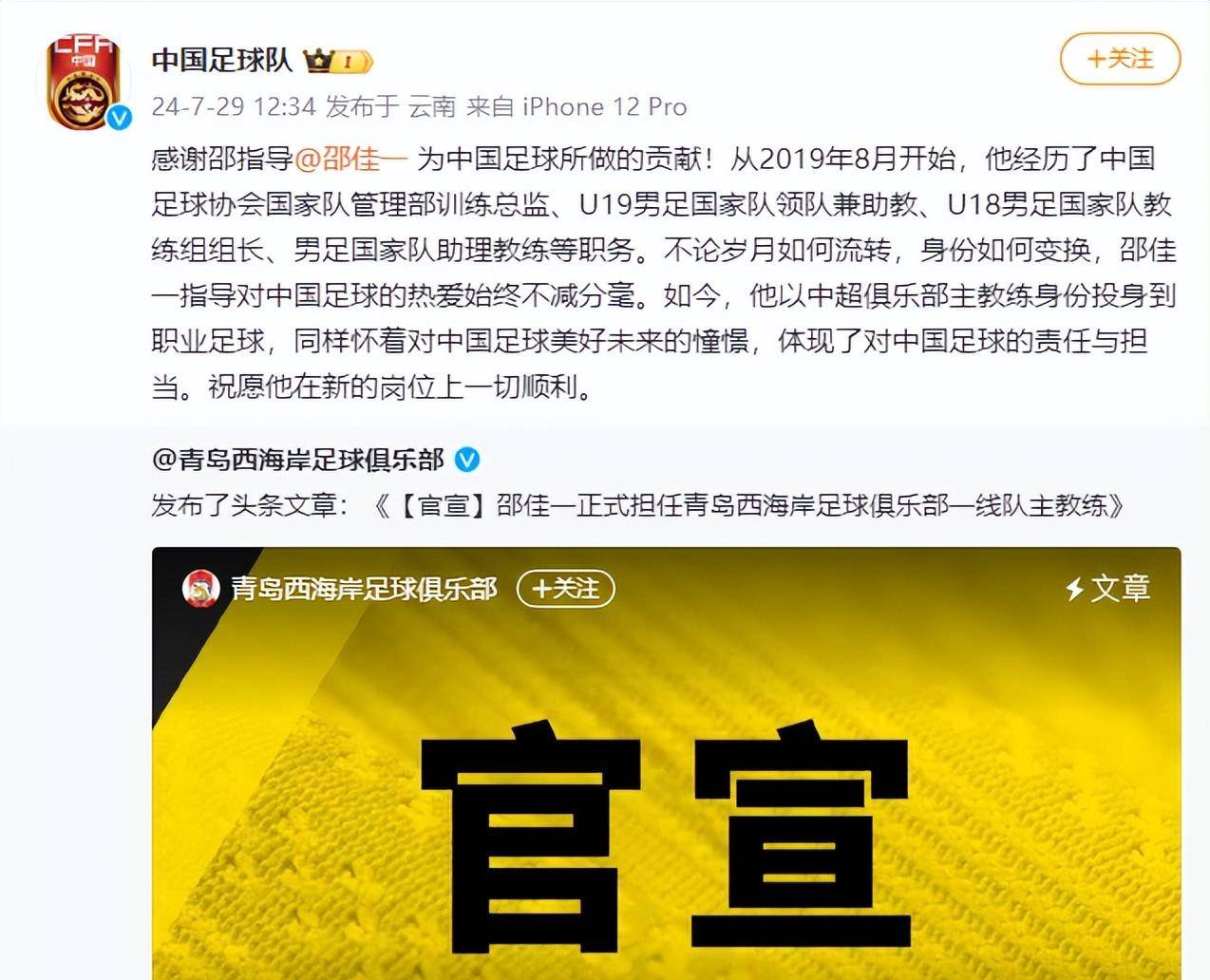 ดังนั้น เมื่อมีการประกาศแต่งตั้ง Shao Jiayi อย่างเป็นทางการ ความปรารถนาดีที่ Li Yi แสดงออกอย่างเหมาะสมบนโซเชียลมีเดียจึงสร้างความประทับใจอย่างลึกซึ้ง: "ขออวยพรให้ Jiayi ประสบความสำเร็จ! ความท้าทายและโอกาสมาคู่กัน ขอให้พวกเราทุกคนอดทนและให้เวลากับโค้ชที่เติบโตมาจากบ้านเกิดของเราอีกสักนิด! สู้ๆ!"