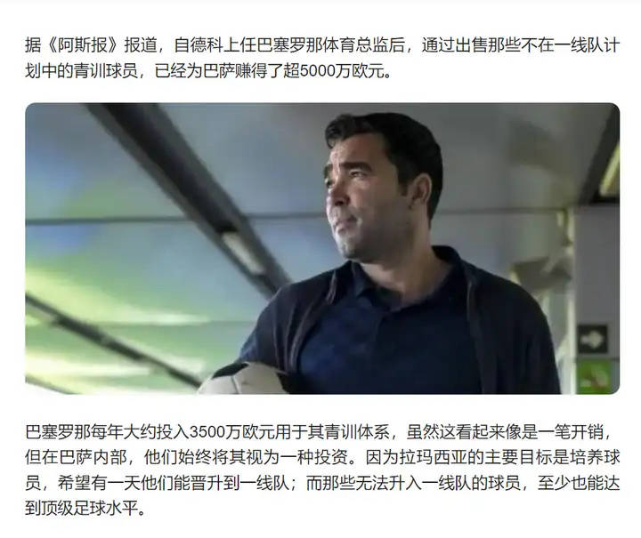 เช่นเดียวกับผู้อำนวยการกีฬาของบาร์เซโลนาอย่างเดโก้ ซึ่งหลังจากได้รับบทบาทสำคัญภายในสโมสร สามารถสร้างรายได้เกือบ 50 ล้านยูโรจากการพัฒนานักเตะเยาวชนและขายพวกเขาออกไปในภายหลัง