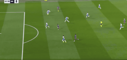 ในนาทีที่ 37 บาร์เซโลนาได้รับลูกฟรีคิกในแดนรุก ราฟินญ่าเปิดบอลเข้าไป แต่เฟร์ราน ตอร์เรสวิ่งเร็วเกินไปและต้องยืดตัวไปด้านหลังเพื่อโหม่งบอล ซึ่งบอลลอยออกไปข้างกรอบประตู