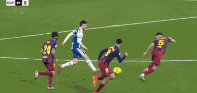 ในนาทีที่ 28 ยามาลได้รับบอลจากเอริค การ์เซีย ก่อนจะโชว์ลีลาหมุนตัวแบบมาร์กเซยเลียน หลบกองหลังไปอย่างเหนือชั้น แต่จังหวะยิงหรือเปิดบอลต่อของเขาหลังจากนั้นกลับไม่ตรงกรอบ