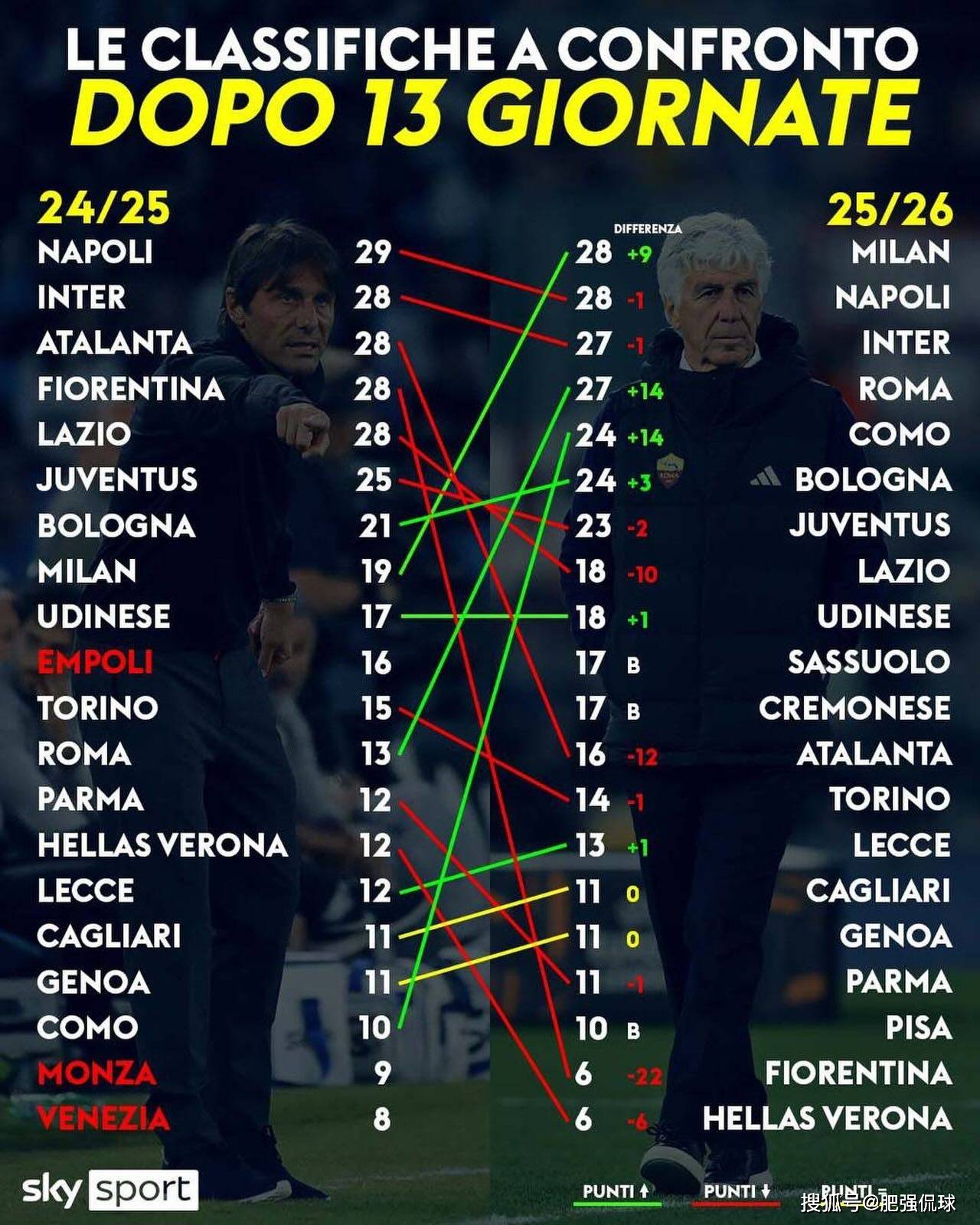 อย่างไรก็ตาม เมื่อลีกฤดูกาลได้ผ่านไปหนึ่งในสามแล้ว อินเตอร์ได้เสียคะแนนไปเพียงหนึ่งคะแนนเมื่อเทียบกับฤดูกาลที่แล้ว แม้ว่าตำแหน่งในลีกของพวกเขาจะลดลงไปหนึ่งอันดับ แต่พวกเขายังคงตามหลังผู้นำเพียงหนึ่งคะแนน ซึ่งบ่งชี้ว่าผลงานของทีมไม่ได้มีการเปลี่ยนแปลงอย่างมีนัยสำคัญเมื่อมองไปยังทีมอื่น ๆ โรม่าและโคโมได้แสดงให้เห็นถึงการพัฒนาที่โดดเด่นที่สุด การมาถึงของกัสเปรินีได้ผลักดันให้โรม่าทะยานขึ้น ขณะที่การลงทุนอย่างมหาศาลของโคโมในการเซ็นสัญญานักเตะใหม่ได้เสริมความแข็งแกร่งของพวกเขาอย่างมีนัยสำคัญ มิลานที่แข่งขันในเพียงหนึ่งรายการ ได้เก็บเก้าคะแนนเพื่อขึ้นนำตารางและกลายเป็นผู้ท้าชิงสำคัญสำหรับแชมป์เซเรียอาในฤดูกาลนี้!ในทางตรงกันข้าม ทั้งฟิออเรนติน่าและอตาลันต้าต่างประสบปัญหาฟอร์มตกอย่างหนักในฤดูกาลนี้เนื่องจากการเปลี่ยนแปลงผู้จัดการทีม โดยเฉพาะอย่างยิ่ง "วิโอลา" ที่ตอนนี้ต้องเผชิญกับการต่อสู้เพื่อหนีตกชั้น