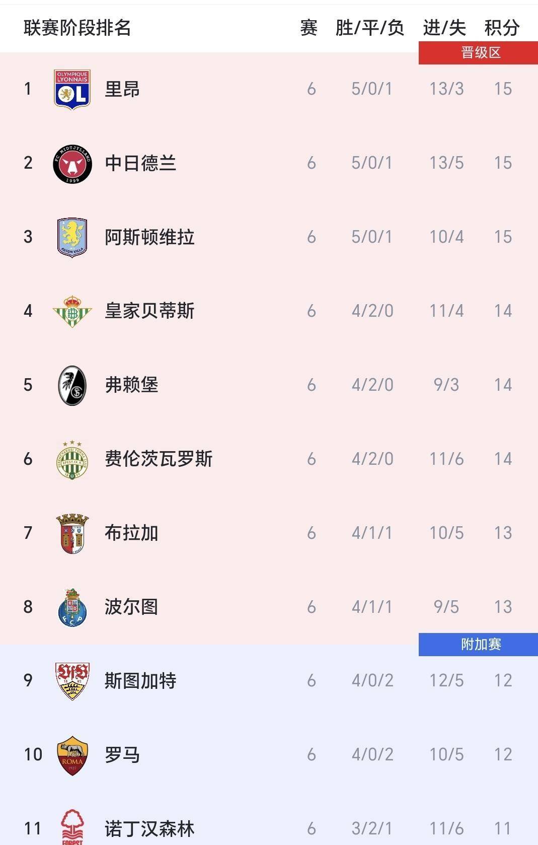 หลังจากการแข่งขันรอบที่หกของยูโรปาลีกสิ้นสุดลง อันดับตารางคะแนนได้กลายเป็นความโกลาหลอย่างสิ้นเชิง! ช่องว่างเพียงสามคะแนนเท่านั้นที่แยกลียงซึ่งครองจ่าฝูงออกจากสตุ๊ตการ์ทที่รั้งอันดับเก้า