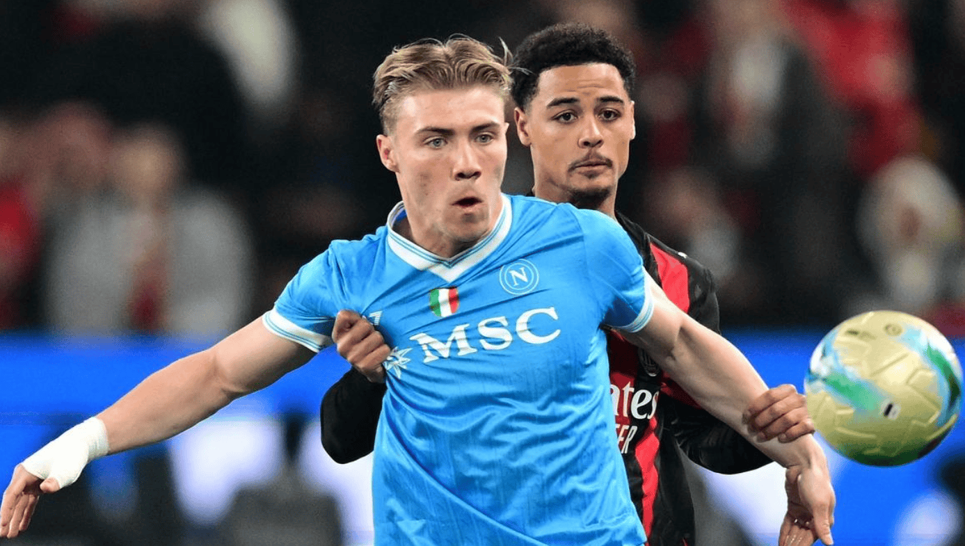 การแข่งขันรอบรองชนะเลิศของศึกซูเปอร์คัพอิตาลีเริ่มต้นขึ้นโดยเอซี มิลานพบกับนาโปลี เอซี มิลานสร้างโอกาสได้ตั้งแต่ต้นเกมไม่นานหลังเริ่มการแข่งขัน ปาฟโลวิชพยายามยิงวอลเลย์แบบผาดโผนในเขตโทษ แต่ลูกยิงของเขาหลุดกรอบไปเล็กน้อย ชิคตามซ้ำยิงต่อ แต่ผู้รักษาประตูสามารถเซฟไว้ได้ในนาทีที่ 16 ซาเลมาร์กเกอร์สยิงวอลเลย์จากกลางกรอบเขตโทษบอลข้ามคานออกไป หกนาทีต่อมา เอลมาสยิงต่ำจากฝั่งซ้ายเข้าหาเสาไกลแต่เฉียดเป้าหมายไปนิดเดียว ในนาทีที่ 39 โฮจ์เบิร์กเปิดบอลจากฝั่งซ้ายของกรอบเขตโทษ ไมญ็องปัดบอลหลุดมือ ทำให้เนเรสยิงเข้าประตูโล่งๆ ในครึ่งแรก เอซี มิลานตามหลัง 0-1