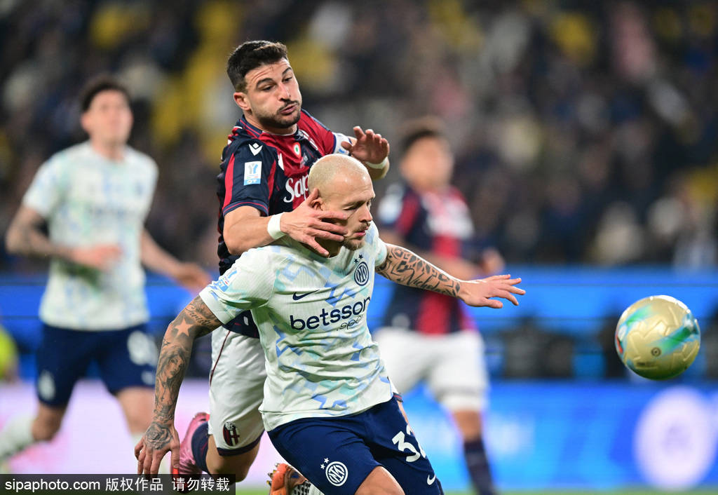 ในช่วงเช้าตรู่ของวันที่ 20 ธันวาคม ตามเวลาปักกิ่ง รอบรองชนะเลิศศึกซูเปอร์คัพอิตาลีระหว่างโบโลญญ่าและอินเตอร์ มิลาน ได้เริ่มขึ้นที่สนามกีฬามหาวิทยาลัยกษัตริย์ซาอูดในซาอุดีอาระเบีย ภายในสองนาทีหลังเริ่มเกม ตูแลมทำประตูแรกให้อินเตอร์ได้สำเร็จ เป็นการเริ่มต้นในฝัน อย่างไรก็ตาม บิสเซ็คทำแฮนด์บอลในเขตโทษ ส่งผลให้ออร์โซลินีได้จุดโทษตีเสมอ เบอร์นาร์เดสคี่ถูกบังคับให้ออกจากสนามเนื่องจากบาดเจ็บ ทั้งสองฝ่ายไม่สามารถเปลี่ยนแปลงสกอร์ในครึ่งหลังได้หลังจาก 90 นาที สกอร์ยังคงอยู่ที่ 1-1 ส่งผลให้การแข่งขันต้องตัดสินด้วยการดวลจุดโทษ อินเตอร์ มิลาน พลาดจุดโทษจาก บาสโตนี, บารเรรา และ โบนุชชี ขณะที่โบโลญญา โมโร และ มิรันดา ก็ยิงไม่เข้าเช่นกัน สุดท้ายโบโลญญาเอาชนะในการดวลจุดโทษ 3-2 ทำให้ชนะรวม 4-3 ผ่านเข้าสู่รอบชิงชนะเลิศ พวกเขาจะพบกับนาโปลี ที่เอาชนะเอซี มิลาน ในรอบรองชนะเลิศอีกคู่