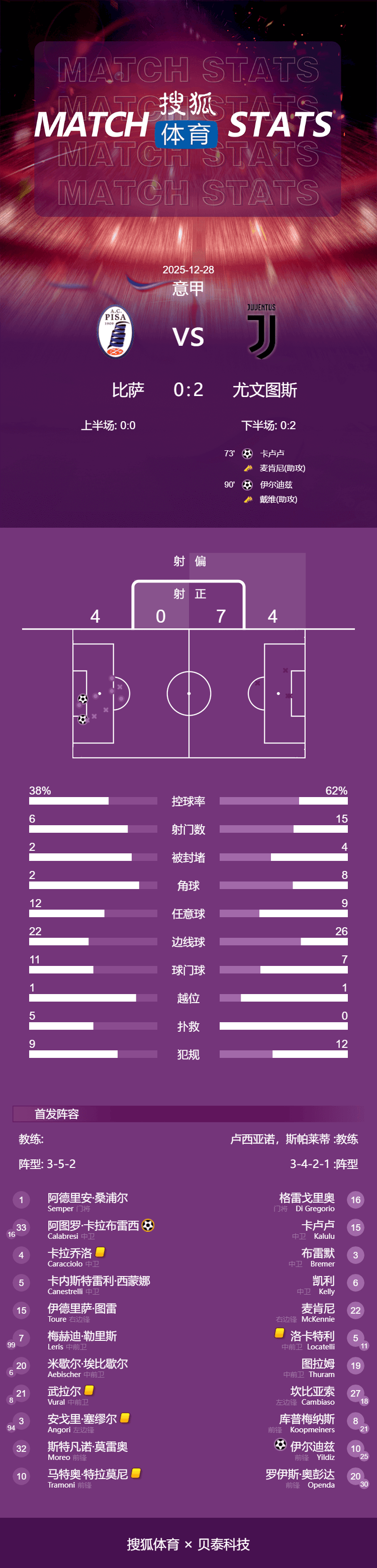 การแข่งขันจบลงด้วยชัยชนะของยูเวนตุสเหนือปิสากับสกอร์ 2-0