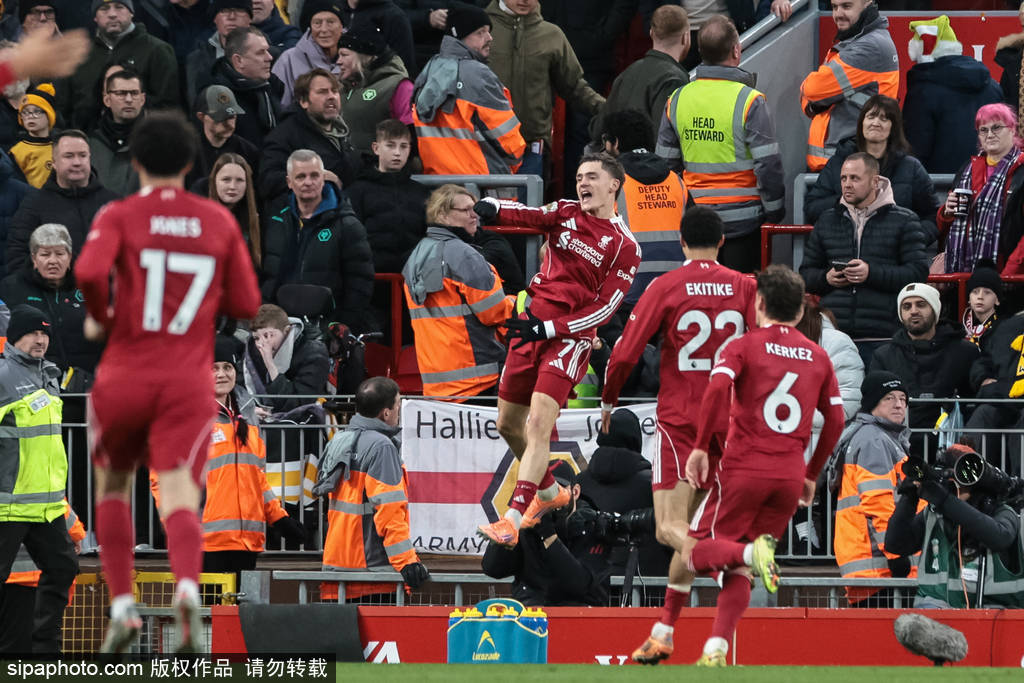 เวลา 23:00 น. ตามเวลาปักกิ่ง วันที่ 27 ธันวาคม การแข่งขันพรีเมียร์ลีกฤดูกาล 2025-26 รอบที่ 18 ยังคงดำเนินต่อไป โดยลิเวอร์พูลเอาชนะวูล์ฟแฮมป์ตัน วันเดอเรอร์ส 2-1 ที่สนามแอนฟิลด์ ผลการแข่งขันนี้ทำให้พวกเขาชนะพรีเมียร์ลีกติดต่อกันเป็นครั้งที่สาม และขยายสถิติชนะติดต่อกันในทุกรายการแข่งขันเป็นสี่นัด และรักษาสถิติไม่แพ้ใครใน 7 นัดติดต่อกันฮราฟน์สสันเปิดสกอร์ในนาทีที่ 41 ก่อนที่เอกิติชจะแอสซิสต์ให้วิร์ตซ์ทำประตูแรกในการลงสนามให้กับทีมหงส์แดงในนาทีที่ 42 ซานติอาโก บูเอโนทำประตูตีตื้นให้หมาป่าจากลูกเตะมุมในนาทีที่ 51 นอกจากนี้ เอกิติชและแม็ค อัลลิสเตอร์ยังยิงไปชนเสาคนละครั้ง