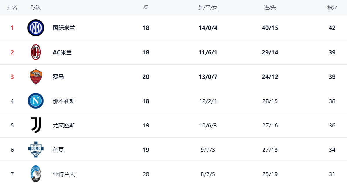 ในตารางลีก อินเตอร์ มิลาน นำเป็นจ่าฝูงด้วย 42 คะแนน เอซี มิลาน อยู่อันดับสองด้วย 39 คะแนน หลังจากชัยชนะของพวกเขา โรม่า ก็มี 39 คะแนนเช่นกัน และไต่ขึ้นมาอยู่อันดับสาม อย่างไรก็ตาม โรม่าได้ลงเล่นมากกว่า เอซี มิลาน สองนัด ทำให้การปรับปรุงตำแหน่งของพวกเขาเป็นเรื่องยากขึ้น นาโปลี อยู่อันดับสี่ด้วย 38 คะแนน ยูเวนตุส อยู่อันดับห้า โดยเก็บได้ 36 คะแนนโคโมทำได้เพียงเสมอ สะสมได้ 34 คะแนน อยู่ในอันดับที่หก อาตาลันตา ยังคงมีทิศทางที่ดีขึ้น อยู่ในอันดับที่เจ็ด โดยมี 31 คะแนน