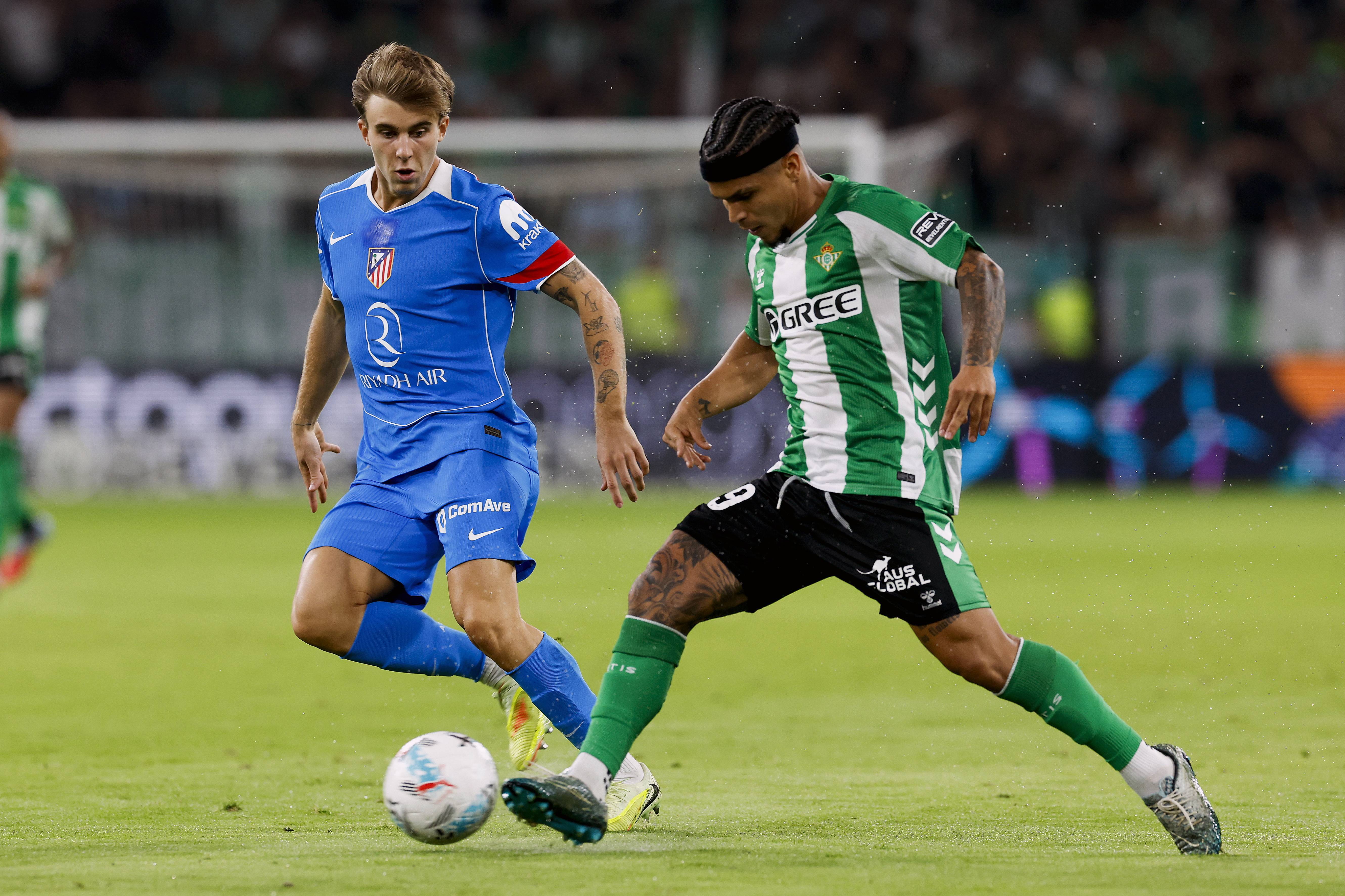 เมื่อวันที่ 27 ตุลาคม โกเก้ (ขวา) ของแอตเลติโก มาดริด เข้าปะทะกับ โรดริเกซ ของเรอัล เบติส เพื่อแย่งบอล ชินหัว/EPA