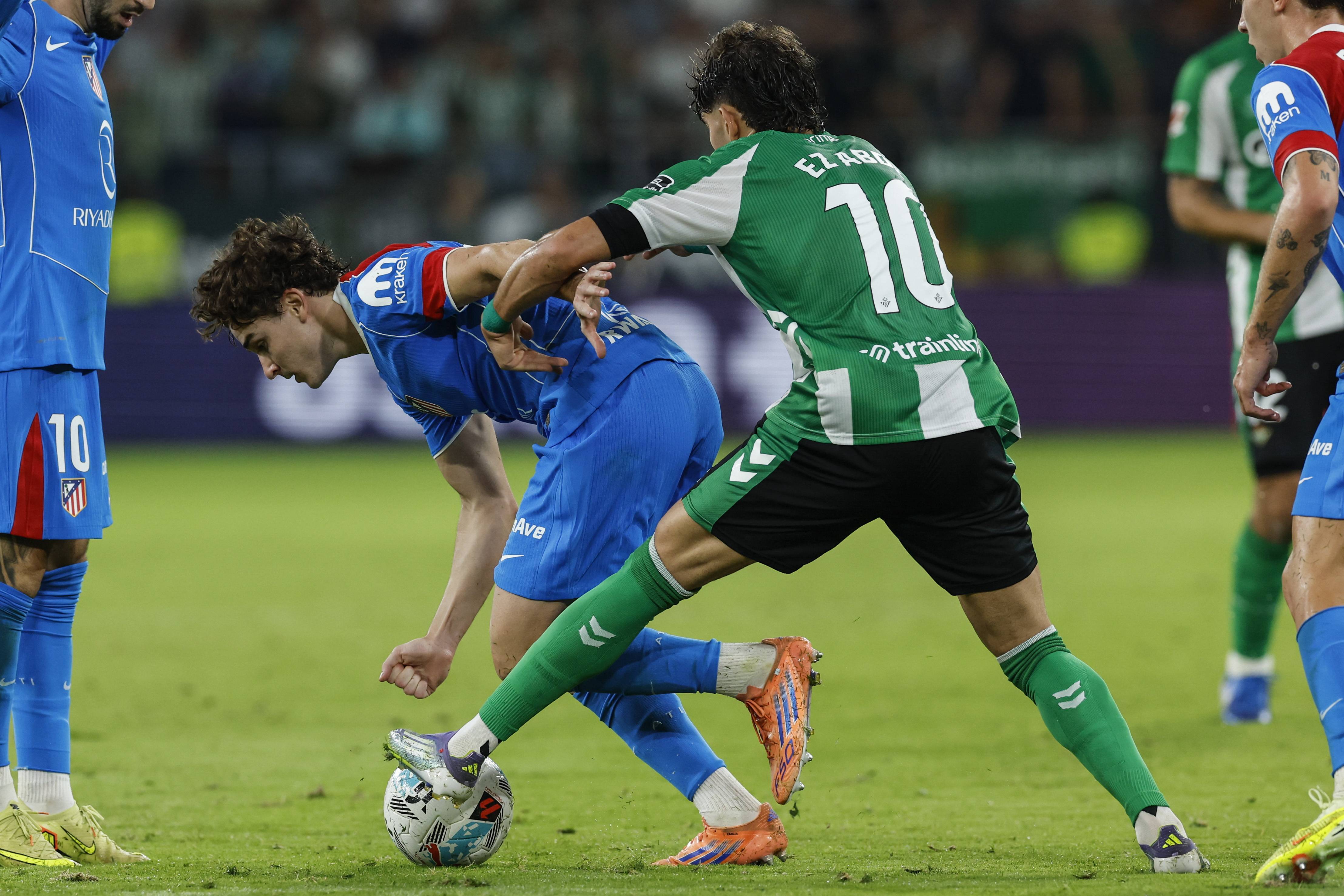 เมื่อวันที่ 27 ตุลาคม อัลบาโร อัลบาเรซ (ซ้าย) ของแอตเลติโก มาดริด เข้าปะทะกับ ยูเซฟ อับเด ของเรอัล เบติส ซีเอ็นเอ/อีพีเอ