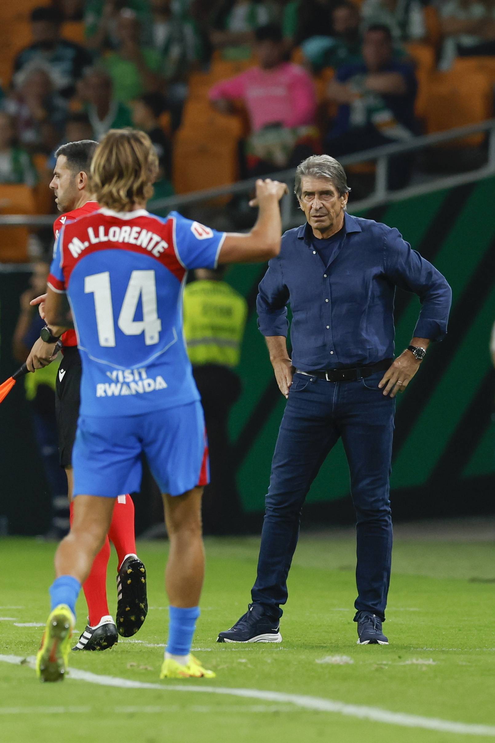 เมื่อวันที่ 27 ตุลาคม มานูเอล เปเยกรินี ผู้จัดการทีมเรอัล เบติส (ขวา) กำลังสั่งการทีมจากข้างสนาม ซินหัว/EPA