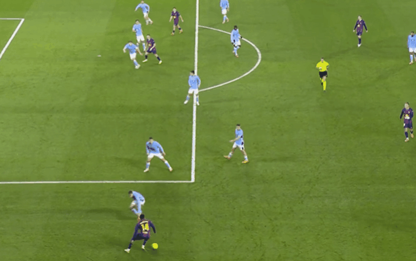 อย่างไรก็ตาม สำหรับบาร์เซโลนา แม้จะนำอยู่ แต่ปัญหาการป้องกันยังคงปรากฏให้เห็นอย่างชัดเจน เซลตา บีโก้ ดำเนินการกดดันสูงและกลยุทธ์การโต้กลับด้วยการล้ำหน้าได้อย่างแม่นยำ ไม่เพียงแต่สามารถเคลียร์บอลได้สำเร็จ แต่ยังเจาะเข้าไปในเขตโทษของทีมคาตาลันได้อย่างรวดเร็วผ่านการผ่านบอลที่คมชัด สร้างภัยคุกคามที่สำคัญ นอกจากนี้ การจัดระเบียบในแดนกลางของบาร์เซโลนาดูจะขาดความเชื่อมโยง โดยเฉพาะอย่างยิ่งหลังจากเปดรีหายไป ทำให้การควบคุมจังหวะของทีมเสื่อมลงอย่างเห็นได้ชัด ซึ่งเป็นปัจจัยที่สร้างแรงกดดันอย่างมากต่อแนวรับ