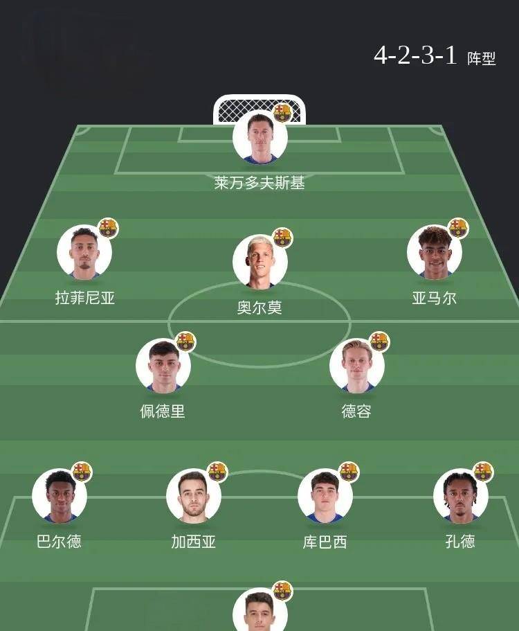 อย่างไรก็ตาม อาการบาดเจ็บยังคงเป็นปัญหาสำคัญสำหรับบาร์เซโลนาในขณะนี้ เฟร์มิน, กาบี และผู้รักษาประตูตัวหลักอย่างเทอร์ สเตเก้น ต่างก็ไม่สามารถลงเล่นได้ ขณะที่กองหลังตัวหลักอย่างอาเราโฮ ก็ไม่สามารถลงเล่นได้เช่นกัน เนื่องจากต้องปรับตัวทางจิตใจในช่วงเวลาหนึ่ง ข่าวดีคือ เพลย์เมกเกอร์ของทีมอย่างเปดรี ได้กลับมาลงสนามแล้ว หลังจากที่ลงเล่นเป็นตัวสำรองในนัดที่ผ่านมาเพื่อฟื้นฟูจังหวะการเล่น และคาดว่าจะกลับมาเป็นตัวจริงในนัดนี้กองกลางระดับมาสเตอร์ที่มีมูลค่า 140 ล้านยูโรนี้ เป็นผู้ควบคุมจังหวะการเปลี่ยนผ่านระหว่างเกมรุกและเกมรับของบาร์เซโลนาอย่างไม่ต้องสงสัย นอกจากนี้ ทั้งเลวานดอฟสกี้และราฟินญ่ายังถูกเปลี่ยนตัวออกหลังจากเล่นเพียง 60 นาทีในนัดล่าสุด ซึ่งเป็นการบ่งชี้ชัดเจนถึงการจัดการความเหนื่อยล้าของพวกเขาสำหรับการแข่งขันที่สำคัญนี้ คาดว่าบาร์เซโลนาจะใช้แผนการเล่น 4-2-3-1 ในการปะทะครั้งนี้