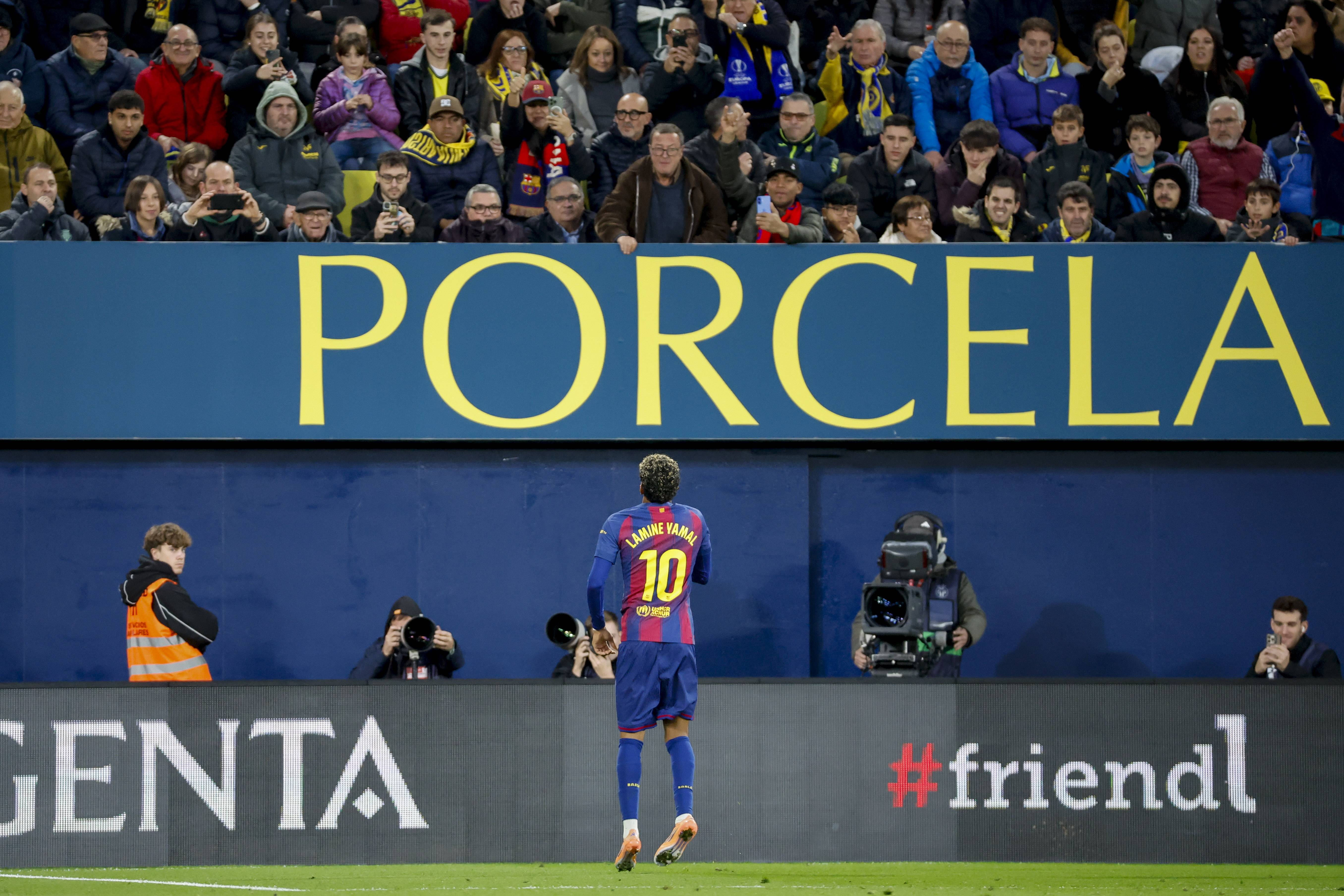 เมื่อวันที่ 21 ธันวาคม ยามาล นักเตะบาร์เซโลนา (กลาง) ทำประตูที่สองของทีมได้ สำนักข่าวซินหัว/EPA