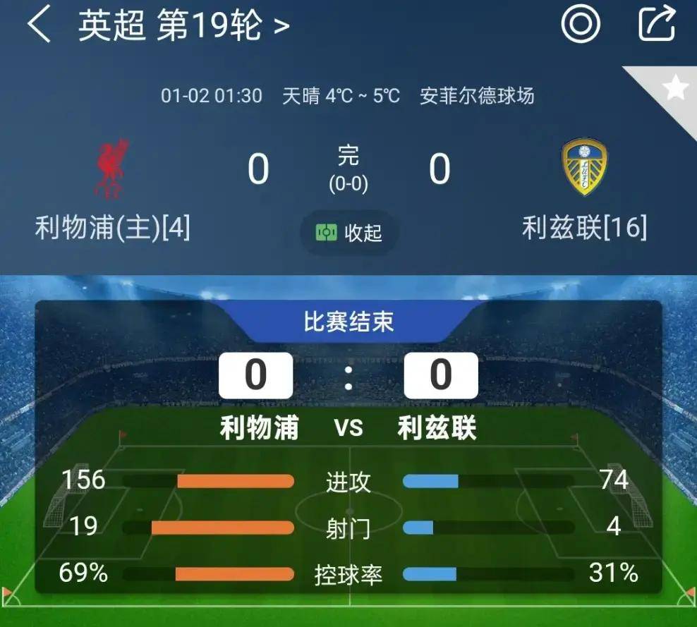 การแข่งขันระหว่างลิเวอร์พูลและลีดส์ยูไนเต็ดเป็นไปอย่างไม่มีเหตุการณ์สำคัญเช่นกัน ที่สนามแอนฟิลด์ ซึ่งเป็นสนามเหย้าของลิเวอร์พูล ทีมหงส์แดงบุกไปข้างหน้าอย่างกระตือรือร้นแต่ไม่สามารถเจาะแนวรับของคู่แข่งได้แม้จะพยายามทำประตูหลายครั้ง แต่ก็มีเพียงไม่กี่ครั้งที่ทดสอบผู้รักษาประตูของลีดส์ ยูไนเต็ดได้อย่างแท้จริง ลีดส์ ยูไนเต็ดแทบไม่มีบทบาทในเกมตลอดการแข่งขัน โดยอาศัยการตั้งรับที่แน่นหนาและโต้กลับเป็นครั้งคราวเท่านั้น แนวทางที่ระมัดระวังนี้ในที่สุดก็ไม่สามารถเปลี่ยนแปลงผลเสมอแบบไร้สกอร์ได้ ทำให้ลิเวอร์พูลพลาดสามแต้ม และการไล่ล่าตำแหน่งในแชมเปียนส์ลีกดูจะยิ่งยากลำบากมากขึ้น
