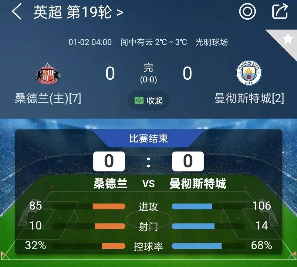 ซันเดอร์แลนด์เสมอแบบไร้สกอร์กับแมนเชสเตอร์ ซิตี้ ซึ่งยิ่งทำให้รู้สึกหงุดหงิดมากขึ้นแมนเชสเตอร์ ซิตี้ ครองเกมได้อย่างชัดเจนในด้านการครองบอล ดูเหมือนจะเป็นเกมที่เหนือกว่าอย่างท่วมท้น อย่างไรก็ตาม การโจมตีของพวกเขาพิสูจน์ให้เห็นว่าอ่อนแอ เสียโอกาสหลายครั้งหน้าประตู แม้เมื่อปีกทั้งสองฝั่งบุกขึ้นทางริมเส้น พวกเขาก็ไม่สามารถสร้างภัยคุกคามที่แท้จริงได้ ซันเดอร์แลนด์ป้องกันอย่างแน่นหนาเหมือนถังที่ปิดสนิท ในขณะที่กดดันเป็นระยะ ๆ ผ่านลูกตั้งเตะ ด้วยทั้งสองฝ่ายขาดประกายการโจมตี ผลการแข่งขันนี้ทำให้การท้าชิงแชมป์ของซิตี้ยากขึ้นไปอีก